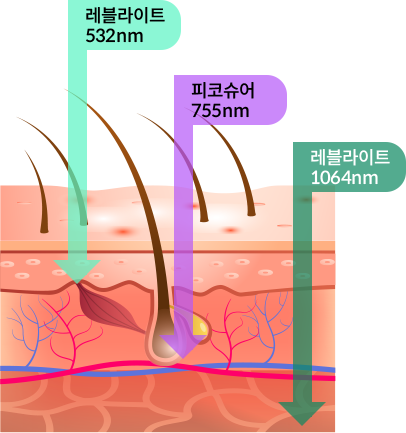 동시에 조사하여, 표피는 물론 진피속 깊이