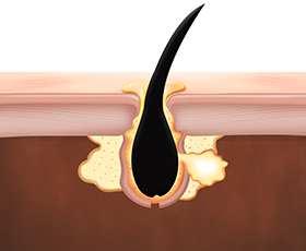 여드름의 단계가 진행되어 피지선이 위축되고